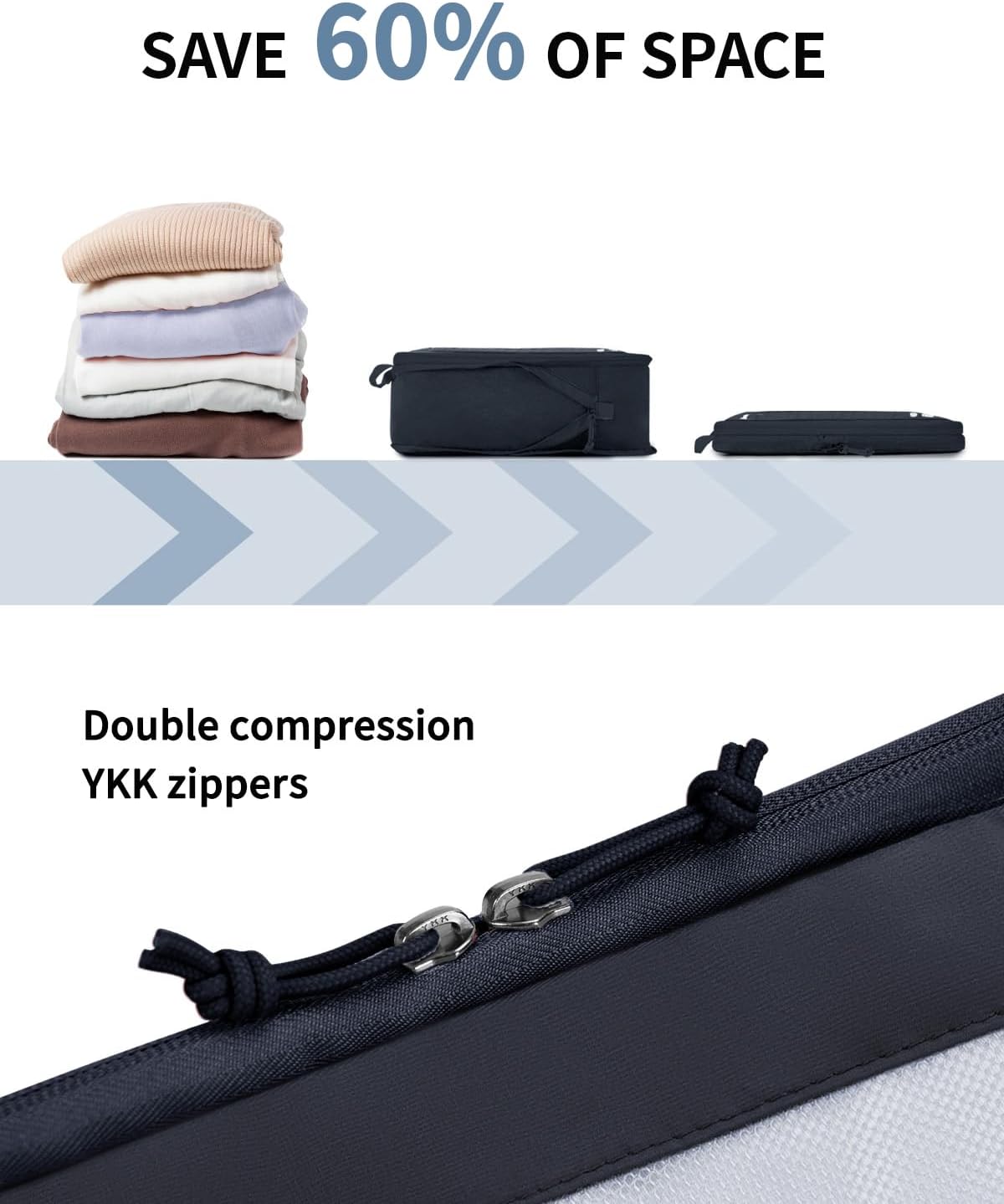 ECOHUB 5 Set Compression Packing Cubes for Suitcases Organiser Bags Set Travel Essentials with Shoe Bags for Travel Tear-resistant Travel Accessories with ID Tag Expandable Packing Bags(Navy Blue)