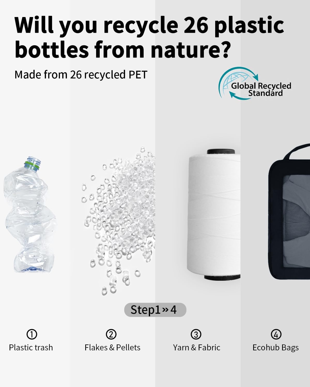 With the ECOHUB Compression Packing Cubes, you can easily separate and categorize your clothing, shoes, accessories, and more, making packing and unpacking a breeze. The set also includes shoe bags to keep your footwear protected and separate from your other items, ensuring everything stays clean and organized throughout your journey.